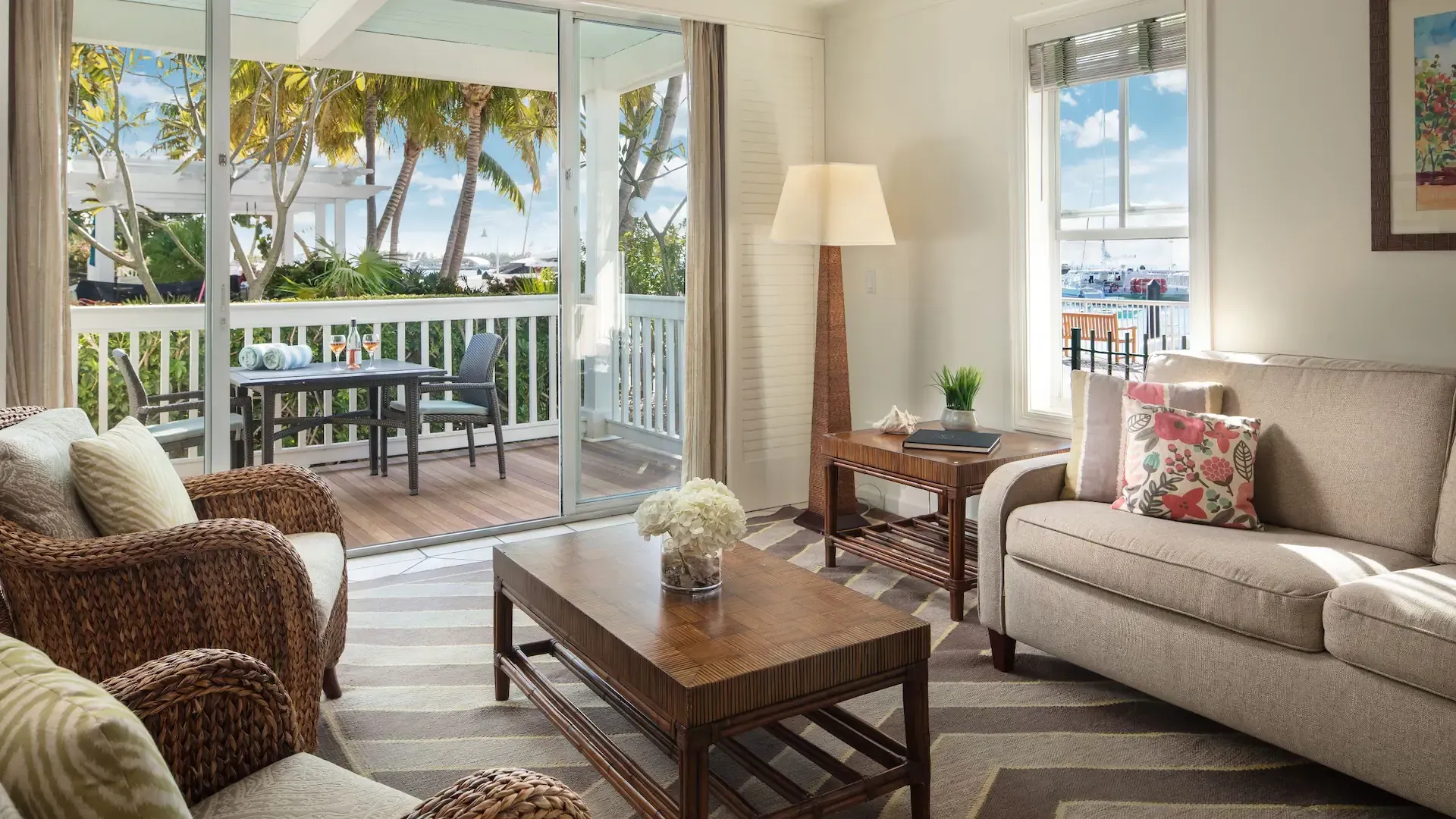 Nestled on the tranquil Atlantic side of Key West, our secluded tropical retreat evokes a sense of bygone days. The property boasts a harmonious blend of classic island architecture, vibrant greenery, and peaceful pathways leading to sunlit white verandas. Each of our accommodations possesses its distinctive charm, whether it's a soaring ceiling, a personal balcony, or an awe-inspiring panoramic vista.